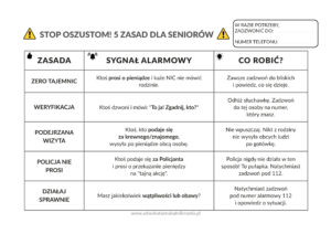 Stop oszustom! Pobierz bezpłatny informator dla SeniorówOszustwa „na wnuczka” i inne metody wyłudzeń stanowią realne zagrożenie dla osób starszych, zwłaszcza w okresie wzmożonej aktywności przestępców. Z tego względu, kluczowe jest nie tylko edukowanie seniorów, ale także wyposażenie ich w proste i czytelne narzędzia, które pomogą im się bronić.